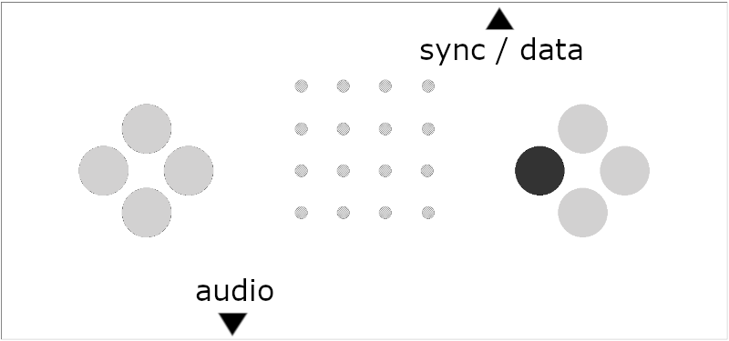 each dot represents a step in the looping 16-step pattern, playback is indicated by chasing light.